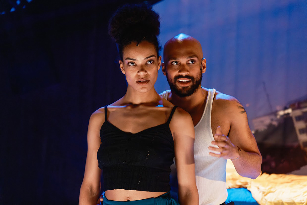 Dans la nuit déchue d’une cité des Amériques, amas de pierres et tombeau de misères tant par les séismes que par l’errance politique et les bandes mafieuses, le jeune couple se retrouve ainsi au pied du mur : fuir ou rester ? D’une étreinte l’autre, de leur passion partagée à l’amour viscéral éprouvé pour leur terre, l’aspiration à la liberté et au bonheur fissure leur devenir… La mise en scène épurée, chaude et colorée de Lucie Berelowitsch, la directrice du CDN de Vire, fait chanter et pleurer les accents créoles. La pièce est servie par deux comédiens d’une incroyable puissance évocatrice (Sonia Bonny, Lawrence Davis), d’une irradiante et sensuelle humanité : un vrai bonheur et grand plaisir de retrouver ce spectacle à l’affiche d’une salle parisienne réputée ! Yonnel Liégeois, photos Samuel Kirszenbaum