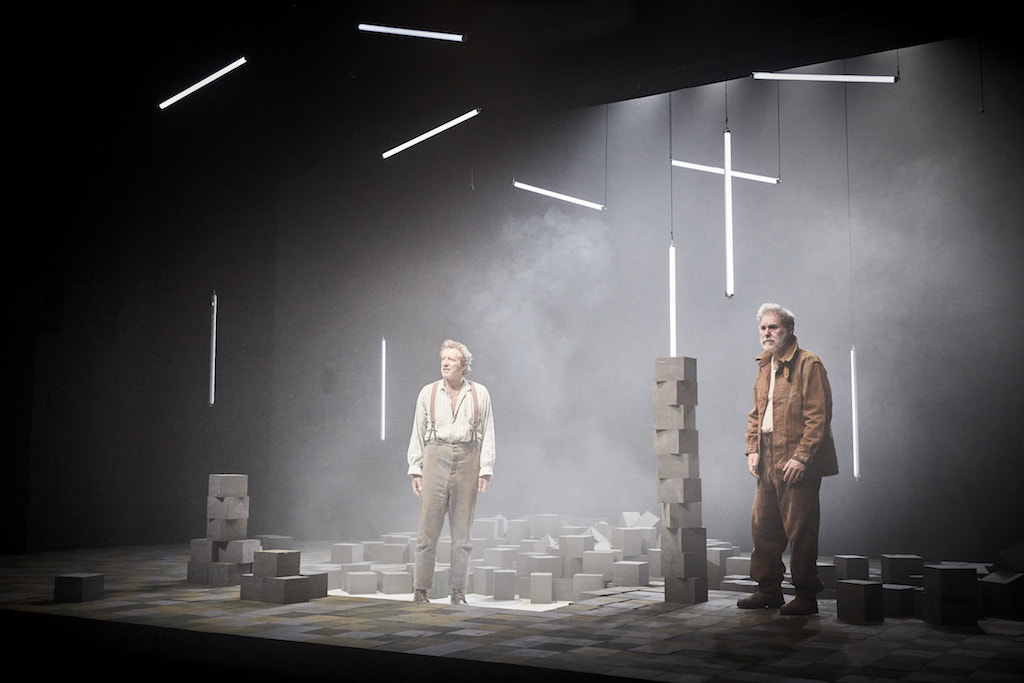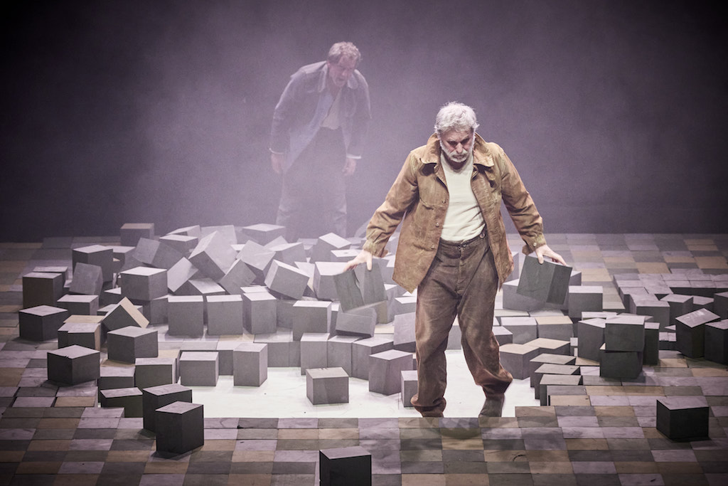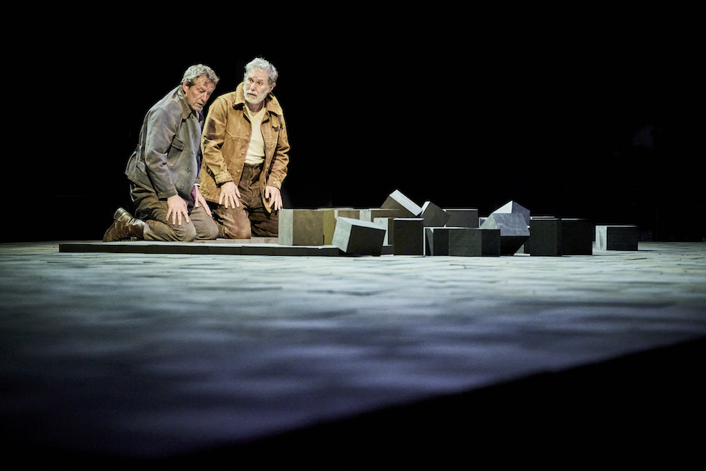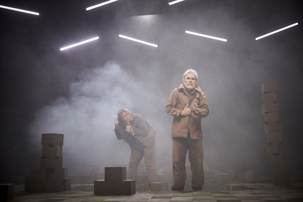 La scénographie, minimaliste, de Caty Olive tire la pièce vers l’abstraction. Sans cesse creusé par les interprètes, transformé en un chaos sinistre à l’instar de leur déshérence, le plateau vide et gris est éclairé par une série de tubes néons. Sous ces lumières glauques et blafardes, rampent des nappes de brouillard. Le metteur en scène a choisi de privilégier la langue de l’auteur et de se focaliser sur ces deux cow-boys sortis d’un western métaphysique en noir et blanc, à la Jim Jarmush. « Notre travail consiste à faire entendre la pièce sans parti-pris formel qui viendrait résoudre les questions multiples, le grand trouble dans lequel nous plongent Harry et Riggal », confie Jacques Vincey. Merci à lui de nous faire découvrir Angus Cerini, auteur de nombreuses pièces souvent primées et montées hors d’Australie. Mireille Davidovici