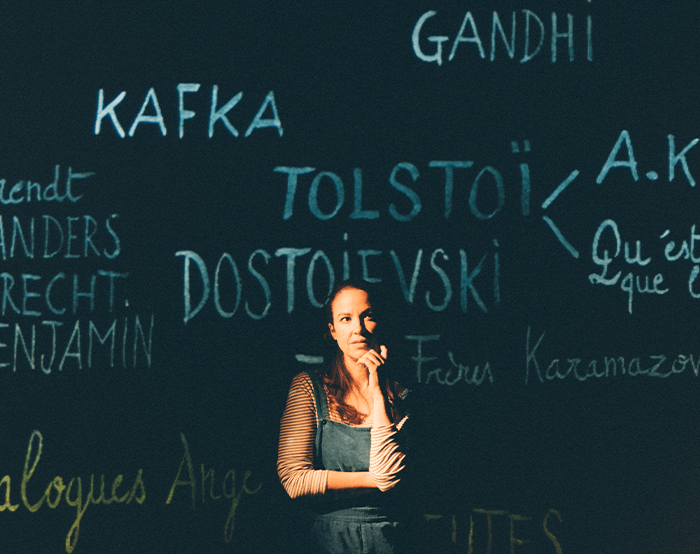 Pour « traverser les sombres temps », Audrey Vernon a imaginé une comédie musicale, où la figure de la philosophe allemande en serait l’épicentre. Un biopic comme en raffolent les studios de Hollywood – elle voit déjà Meryl Streep remporter l’Oscar. Une constellation Arendt qui trouverait sa place entre la Grande et la Petite Ourse. Dans cette nébuleuse aux ramifications solides, on y croise Günther Anders, Walter Benjamin, Brecht, Tolstoï, Kafka, Dostoïevski. Demandez le programme !