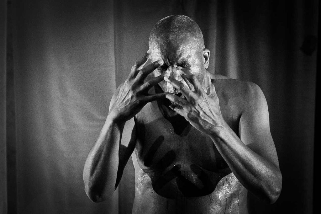 S’avançant d’une intime conviction en devant du public, pour cette poétique traversée Jacques Martial a troqué le bois du navire aux puanteurs suffocantes à celui, odorant et chaleureux, d’un mythique théâtre sis à la Cartoucherie, celui de L’épée de bois. Une tenture aux couleurs chatoyantes en fond de scène, quelques nippes éparpillées sur le plateau, la voix s’élève. Tantôt impérieuse et tumultueuse, tantôt sourde et caverneuse, elle n’est point banale récitation du luxuriant poème d’Aimé Césaire publié en 1939, elle psalmodie corps et maux à l’empreinte des mots de cet emblématique Cahier d’un retour au pays natal ! Visage et peau ruisselants sous la chaleur tropique, roulent en larmes argentées les noirs sanglots de l’identité créole autant que la poétique flamboyance d’une langue archipélisée. Criant en un suprême et ultime souffle d’humanité liberté, dignité, fraternité pour les peuples humiliés et enchaînés, ceux des Antilles et d’ailleurs, sans haine pour les colonisateurs, les tueurs et violeurs, les exploiteurs…