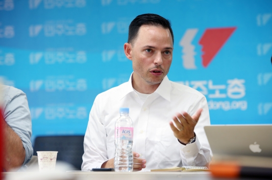 « Je suis dans le milieu de l’hôtellerie-restauration depuis vingt ans. Je travaille dans les grands palaces parisiens et on m’appelle à l’occasion d’événements culturels ou sportifs comme le Festival de Cannes ou Roland-Garros, de séminaires ou de mariages. Je me considère chanceux car j’ai encore des droits cette année même si je n’ai pas travaillé depuis un an. Mais depuis le mois de mars, on n’a reçu absolument aucune aide par rapport à nos amis du monde du spectacle, qui ont bénéficié d’une année blanche. Personnellement, je refuse la qualification d’« extra de l’événementiel ». Si je me bats aux côtés de mes camarades de l’Odéon, c’est pour tous les « intermittents de l’emploi », pas seulement dans l’événementiel, qui travaillent de manière discontinue mais ne bénéficient pas du régime de l’intermittence. Cette tranche de la société représente 10 % de la population en France et se sent abandonnée. La réforme de l’assurance-chômage sera aussi mortifère et assassine pour ceux qui travaillent en contrat court ».