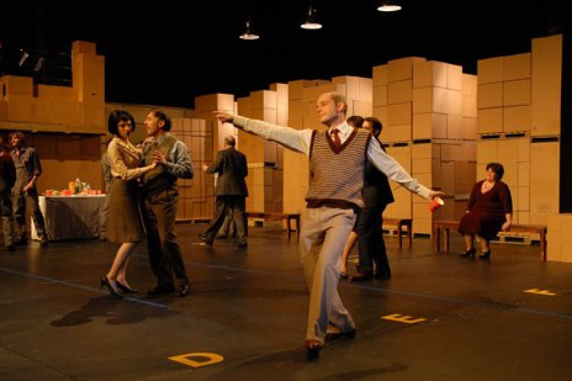 L’action, ici, se joue partout, devant et derrière cet amas de cartons d’emballage qui squattent le plateau. Murs de production pour papier – toilette, murs de protection pour les comédiens qui apparaissent et disparaissent au gré de dialogues impromptus qui se répondent d’une scène à l’autre… Drame et comédie, rire et facéties, toute la palette de l’art dramatique se déploie avec démesure. Mai 68 est passé par là, plus rien ne sera comme avant chez Ravoire et Dehaze, la petite entreprise familiale devenue une multinationale entre les mains d’United Paper C°, le géant américain ! Vinaner, en visionnaire qui écrit entre 1967 et 1969, ne masque rien non plus sur ce que deviendront ces fameux rapports sociaux : la course à la promotion, les jalousies entre salariés et conflits entre services. C’est que l’argent n’a pas d’odeur, même quand on fait dans le papier – toilette, hormis qu’il corrompt tout : les relations entre les gens, du plus bas de l’échelle jusqu’au plus hauts dirigeants.