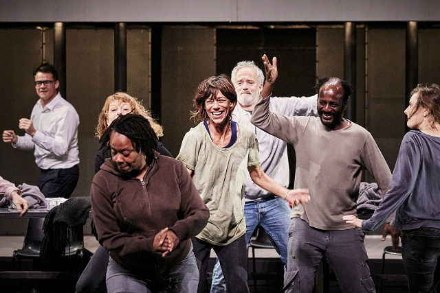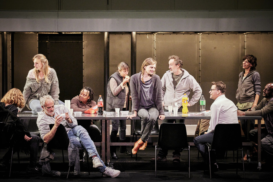 La grande force d’Anne-Laure Liégeois ? Ne pas livrer au public une énième copie, hyper réaliste et sans pas de côté, de la lutte des classes mais offrir au devant de la scène le tréfonds d’hommes et femmes submergés par la colère, contraints au blocage de l’usine et pourtant fiers de leur outil de travail ! Chacune et chacun, à tour de rôle, exposent leurs doutes et convictions, affichent leurs désaccords et querelles, constatent leur capacité d’inertie autant que leur pouvoir de rébellion. Jusqu’à cet instant crucial où, sous nos yeux, prend forme un collectif qui supplante plaintes et griefs individuels, s’invente une parole chorale qui appelle fête et musique : la chanson de Neil Young, Ne te laisse pas abattre/Ce ne sont que des châteaux qui brûlent/Trouve quelqu’un qui change ta route/Et tu te retrouveras, l’organisation d’un grand barbecue où parents et enfants, amis et amants sont conviés à déguster les fameux poulets rôtis.