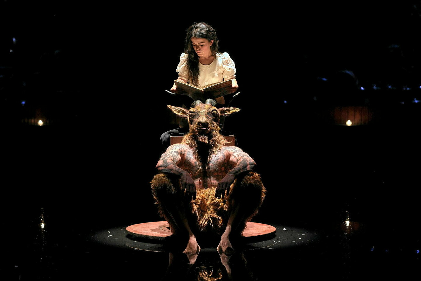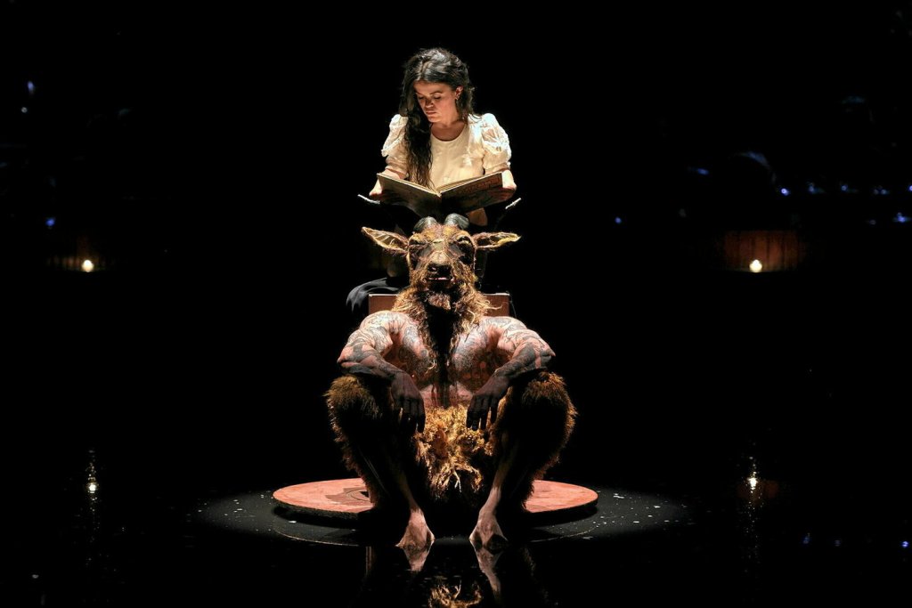 Alors s’élève du haut des cintres, perdue dans les étoiles, la voix de la femme-enfant. Cristalline, tantôt pressante tantôt chuchotante… La chevauchée poétique est engagée : est-ce l’homme ou l’animal qui fait résonner les mots ? Peu importe, l’histoire de l’humanité se fait entendre. Le verbe haut, épique, chevaleresque, femme ou homme récitant. Presque deux heures durant, les paroles vont tambouriner dans le superbe décor du Fort d’Aubervilliers. Et entonner quelques longs extraits des Cantiques du corbeau, le livre-poème du maître céans. Il n’est point question de s’attarder sur les attendus scientifiques de l’apparition de l’univers. L’essentiel est ailleurs, le tout est partie de chacun, chacun est partie du tout dans cette fantasmagorie des quatre éléments : le feu et l’air, l’eau et la terre. De la bactérie flottante à la bête rampante, de l’animal rugissant au sapiens se redressant…