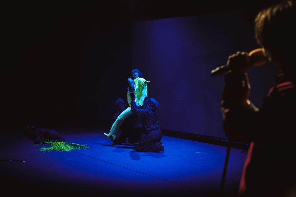 Pour tout décor une forêt de micros haut perchés, en fond de scène un comédien-technicien-musicien ( Fred Costa) s’active entre lumières, bruits et sons. Sur les planches du théâtre Jean Vilar de Vitry, pas encore chahutés par les vagues de la haute mer, s’embarquent trois matelots peu ordinaires. Bénévoles engagés dans une mission humanitaire à grands risques, ils changeront de rôles au fil de la représentation : membre d’équipage, secouriste, capitaine, journaliste… Embarquement terminé, destination la mer Egée, et vogue la galère ! Avec force convictions et dotés d’une folle énergie, les trois comédiens (Saabo Balde, Jonathan Heckel, Lymia Vitte) nous content de la voix et du geste cette dernière mission de l’Aquarius à l’heure où les autorités italiennes lui refusent le droit de débarquer les centaines de rescapés à son bord.