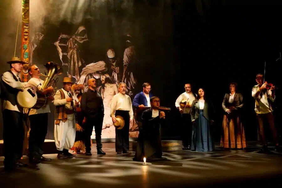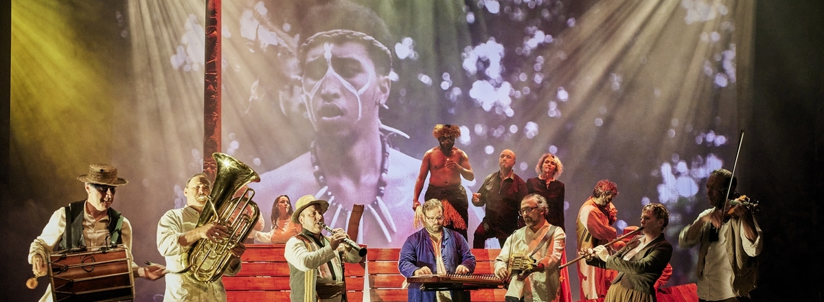 Trois révoltes étouffées avec une égale sauvagerie, sans états d’âme ni sommations, trois figures emblématiques au devant de la scène : Louise Michel la communarde, le kabyle Aziz condamné à 25 ans de bagne, Ataï le grand chef kanak de Komaté dont la tête coupée flottera longtemps dans le formol au musée de l’Homme à Paris. Sublimée par le chant épique d’Abdelwaheb Sefsaf, une fresque historique se déploie avec ampleur sur le grand plateau du théâtre !