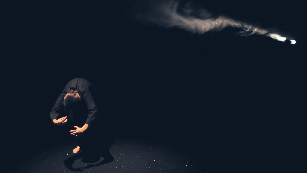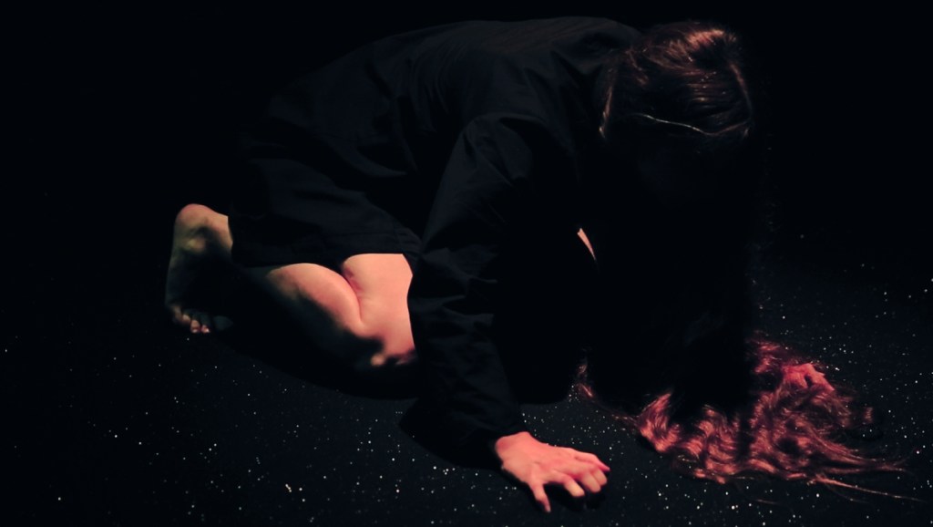 Il lui faut apprendre à oublier, à effacer ce que la forêt lui a révélé, à prononcer des paroles dont elle ignore le sens et qu’elle ne fait que répéter, à invoquer les cieux et un « père transfiguré ». La nuit, elle court l’aventure en quête de viande, le jour elle est contrainte de « nettoyer sa parole qui avait trop traîné sur la terre noire de la forêt ». Sur le plateau, la lumière devient un peu plus vivace, quoique toujours volatile, éphémère. Un visage apparaît, une longue chevelure aussi. Tantôt debout, immobile, tantôt à quatre pattes, fuyant pour toujours, à jamais… L’appel de la forêt est trop pressant.
