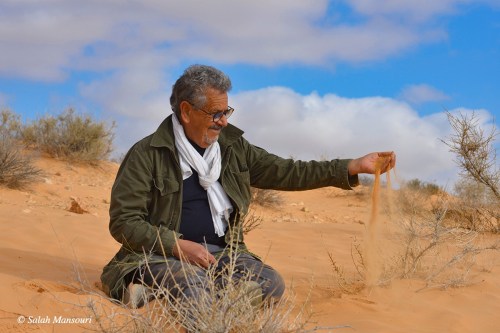 Enfant des sables, natif de Tataouine en Tunisie et fils de la tribu Daghari, Abdallah Akar a vécu sa jeunesse entre dunes et pâturages. Berger de chèvres et moutons, comme tous les gamins de son âge la vie de semi-nomade fut son école : la beauté des paysages, la grandeur du désert, la découverte des mystères de la nature. Son plaisir pour vaincre l’ennui de longues journées à surveiller les bêtes ? Pister les traces des serpents et gerboises, les capturer… « Une enfance simple, agréable, avec l’essentiel pour vivre : figues, sucre, sel et piment », témoigne l’artiste.
