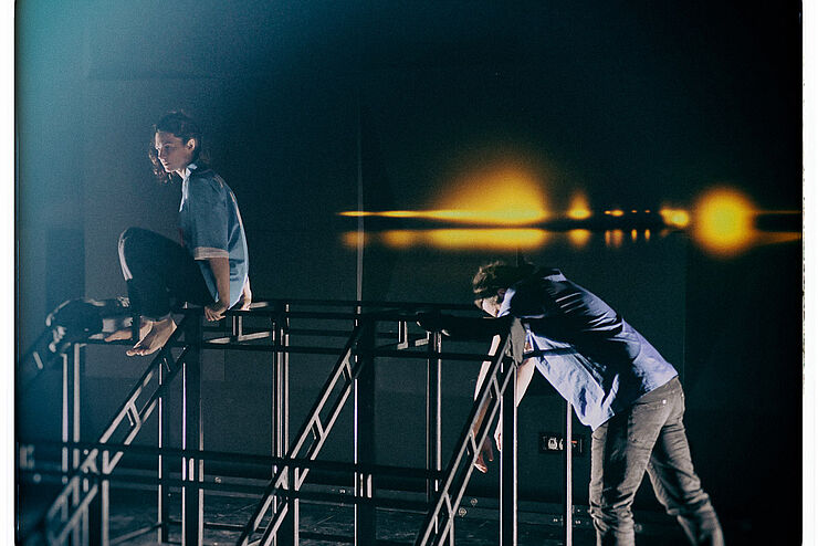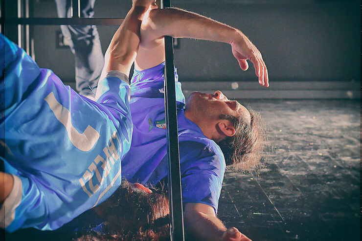 Salle de l’Équinoxe, scène nationale de Châteauroux (36). En cette soirée du 24 mai, le public nombreux s’est mis aux abris : de la carabine au pistolet, les balles sifflent ! Une image seulement alors que Delphine Réau, vice-championne olympique à Sydney 2000 et médaille de bronze à Londres 2012 au tir à la fosse olympique, s’avance sur les planches à la rencontre de Frédéric Ferrer… Le comédien entame alors un dialogue impromptu avec la sportive de haut niveau. Sur la scène de la Grande Halle de la Villette, au final de son Olympicorama, il « met en jeu » diverses disciplines sportives, six sur une quinzaine à son palmarès : du 100 mètres au marathon, du tennis de table au handball, du saut en hauteur à la boxe super-lourd…